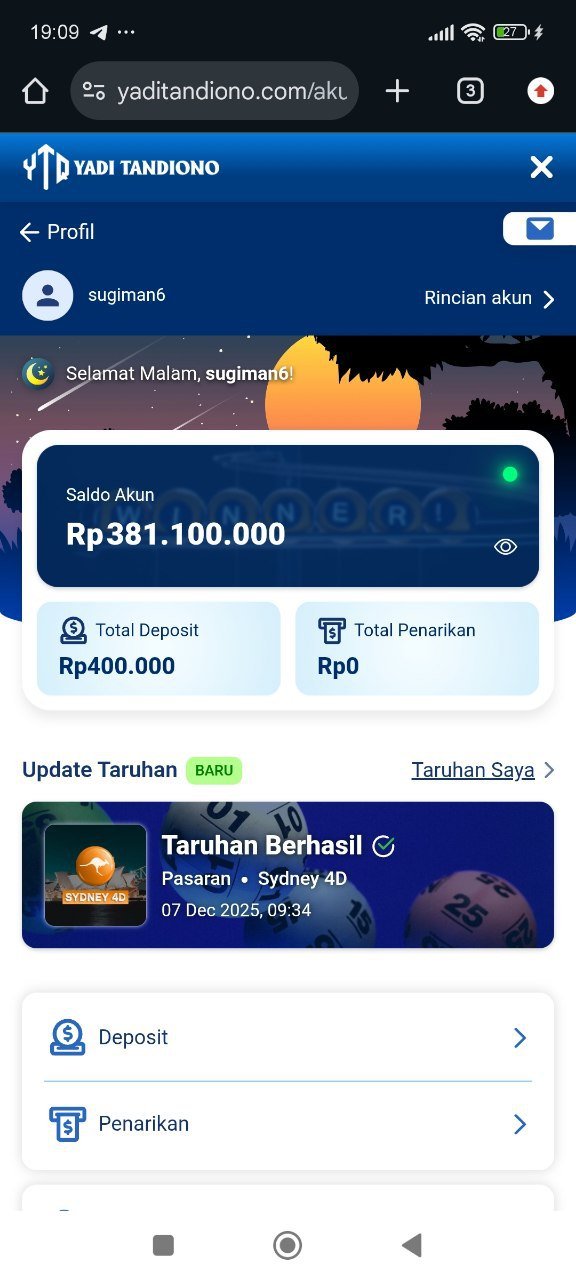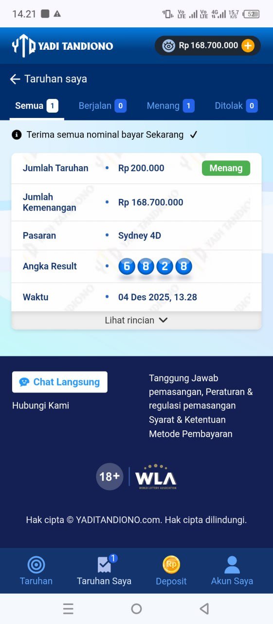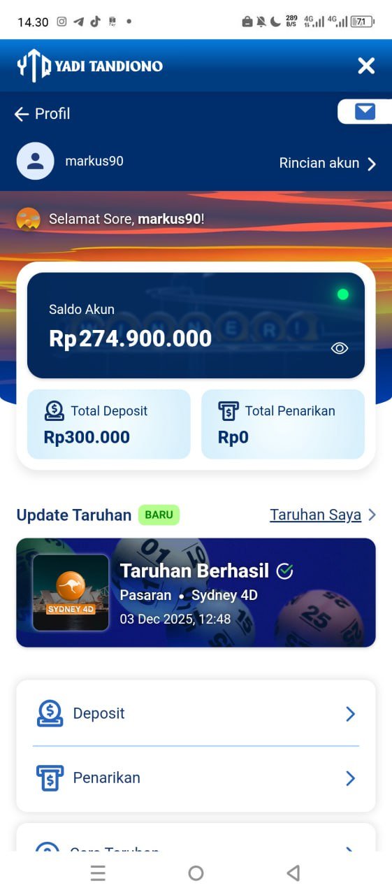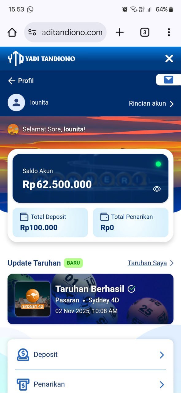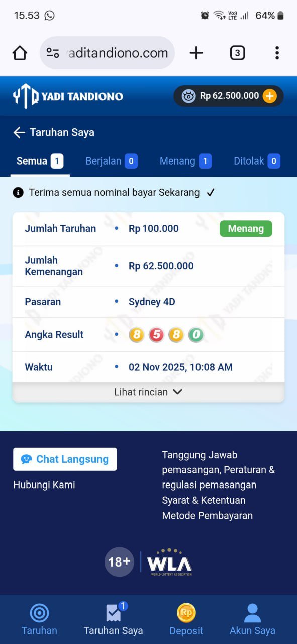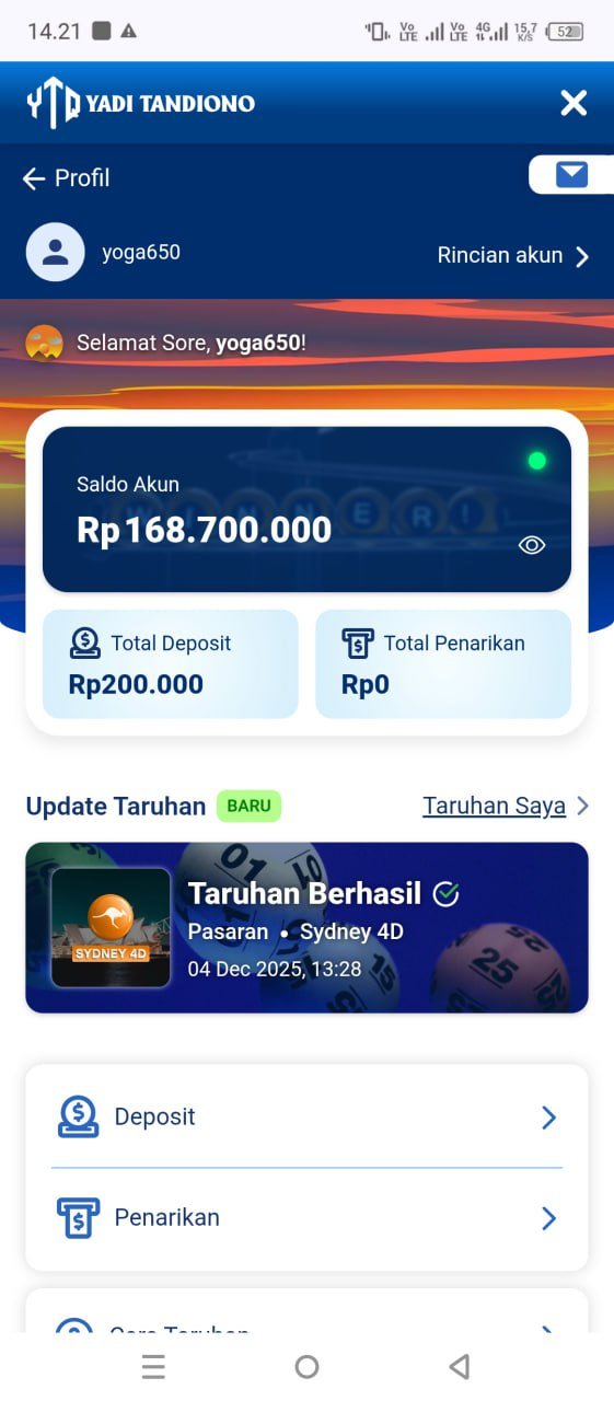 izin laporan ya… hasil jackpot togel sydney hari ini sudah masuk ke rekening, prosesnya cepet banget. Makasih admin @yaditandiono 🙏💰
