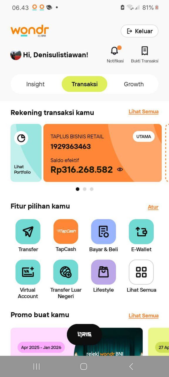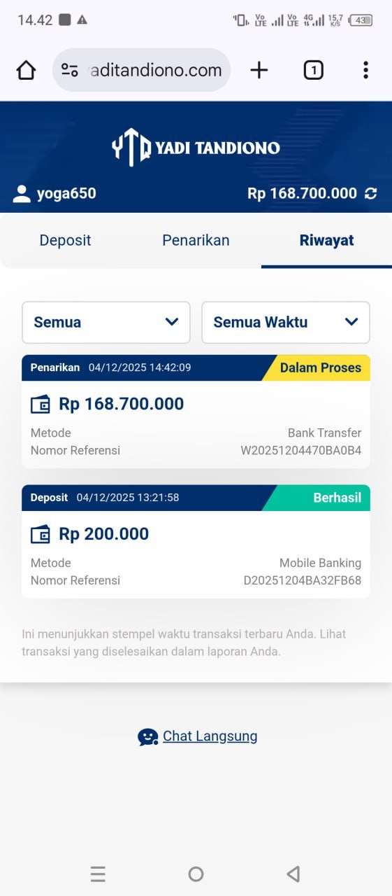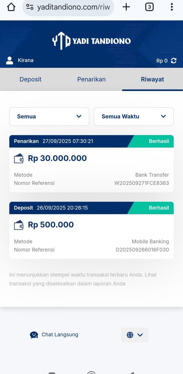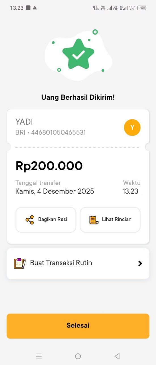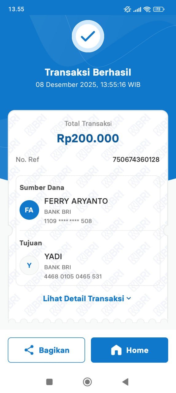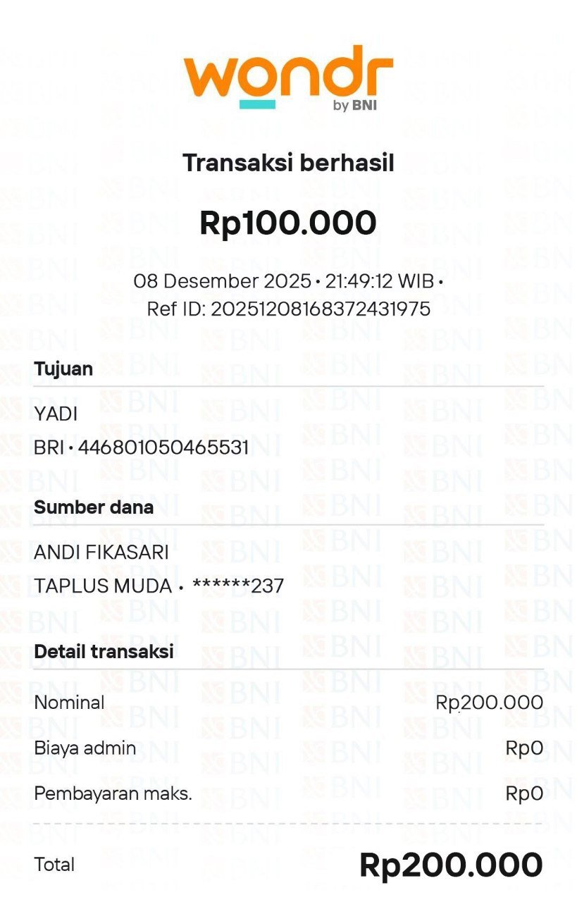 nih wdnya udah masuk direkening, terima kasih pak yadi 🙏