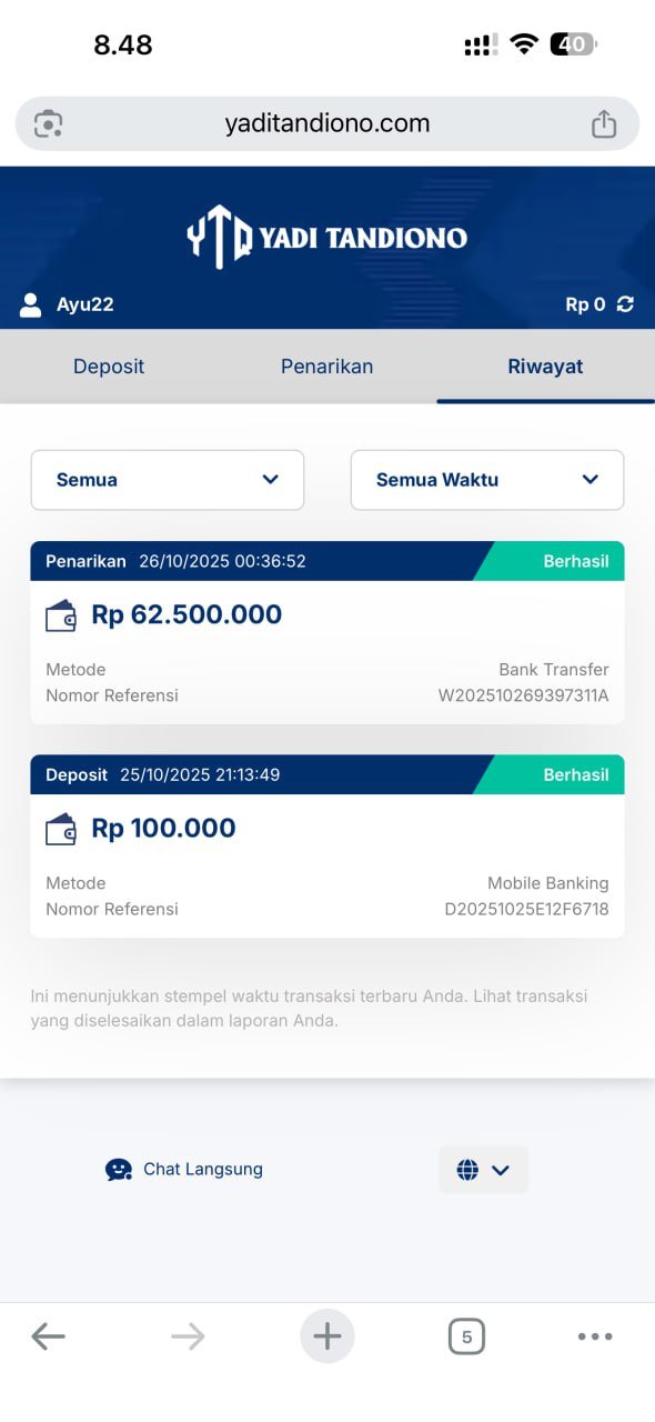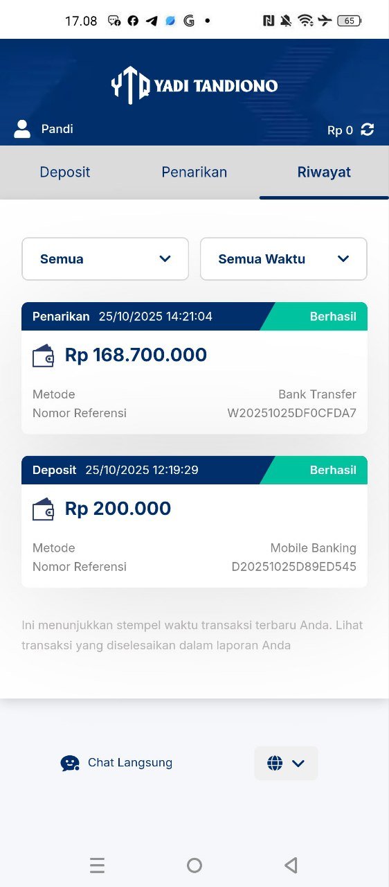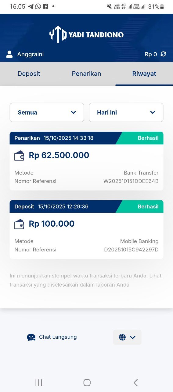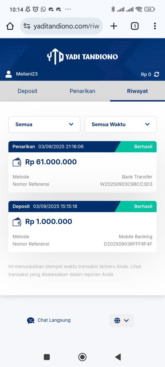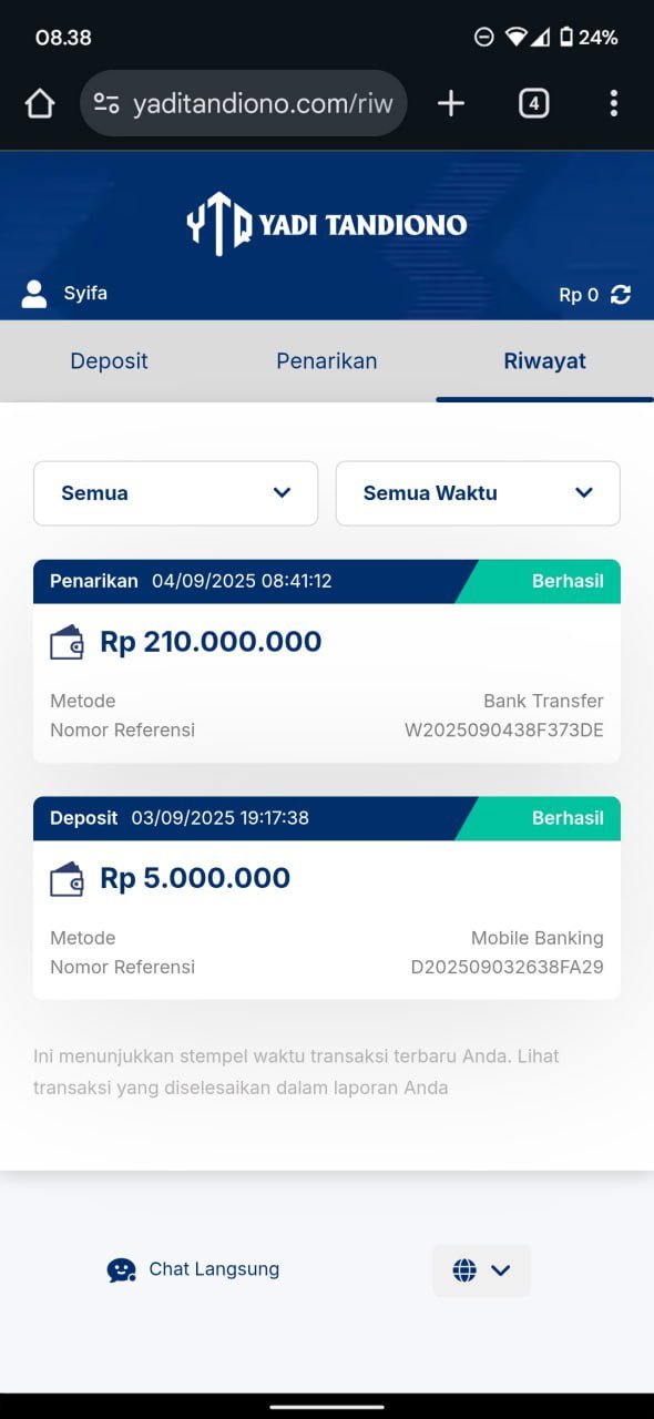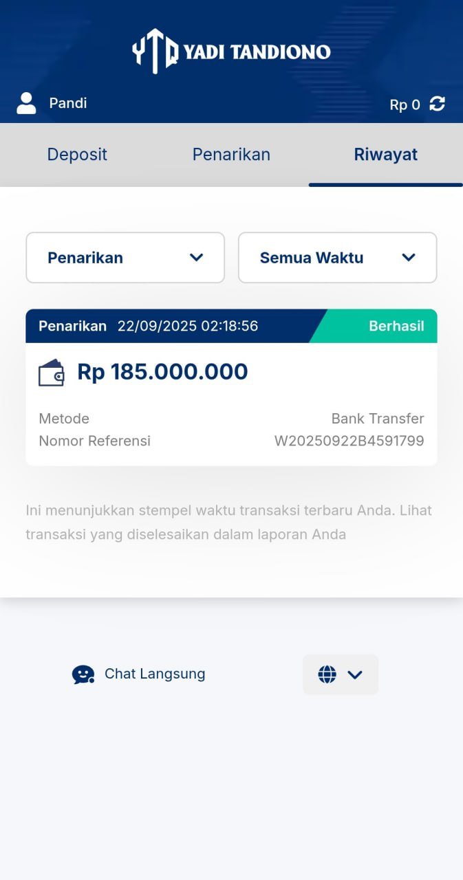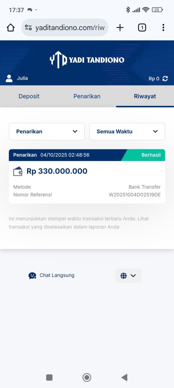 hasil withdraw kemarin pak yadi, terima kasih sudah bantuannya 👍