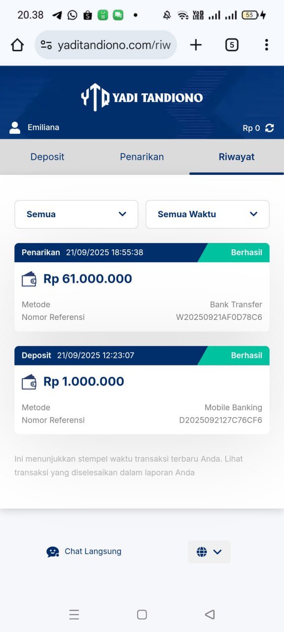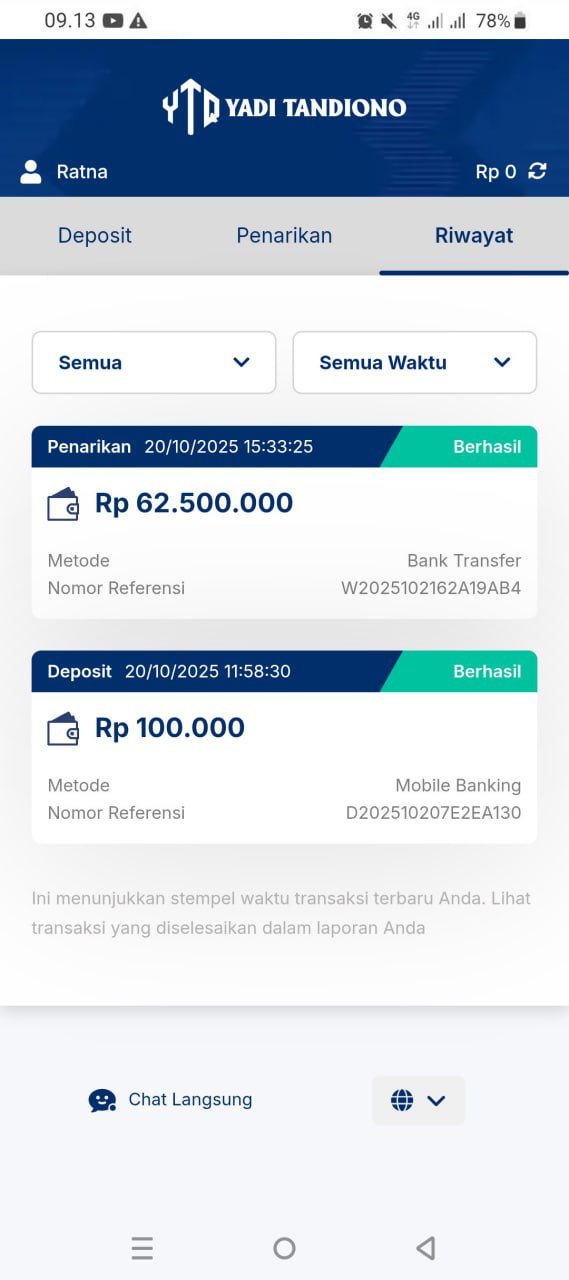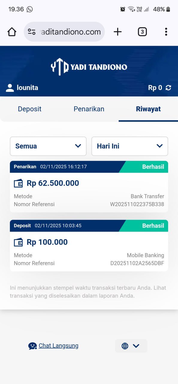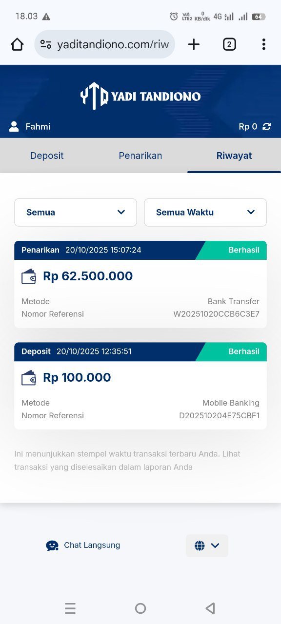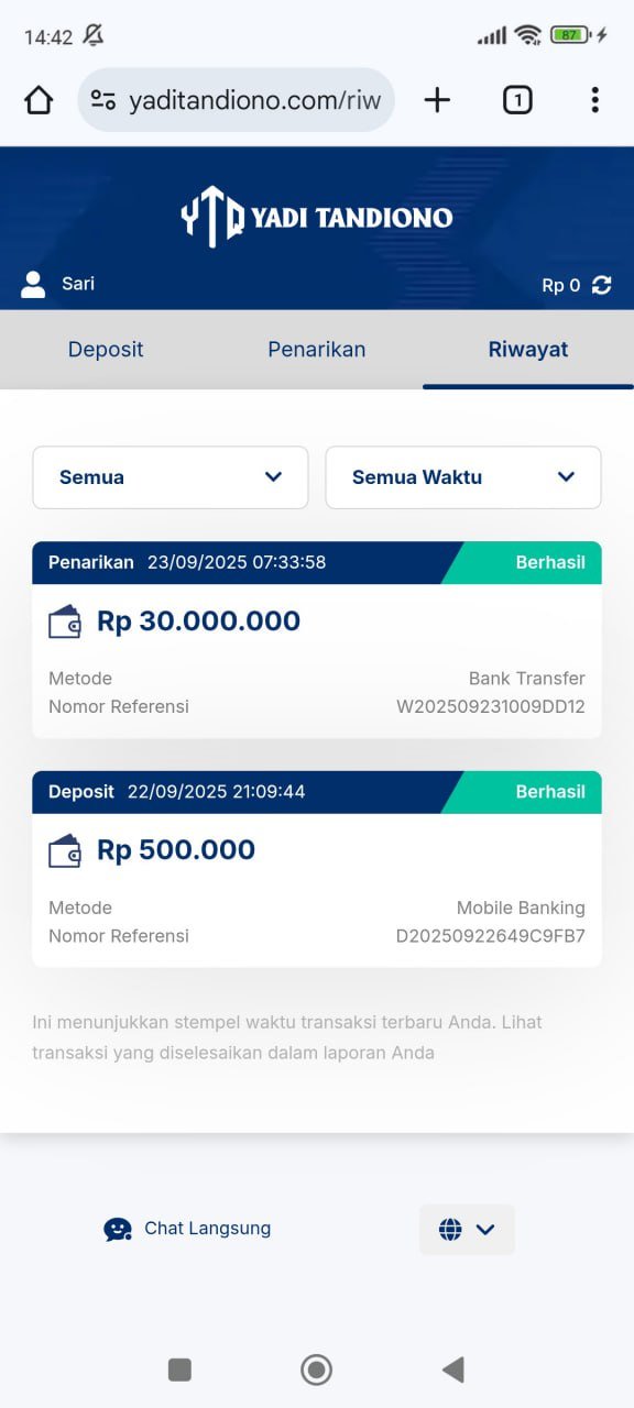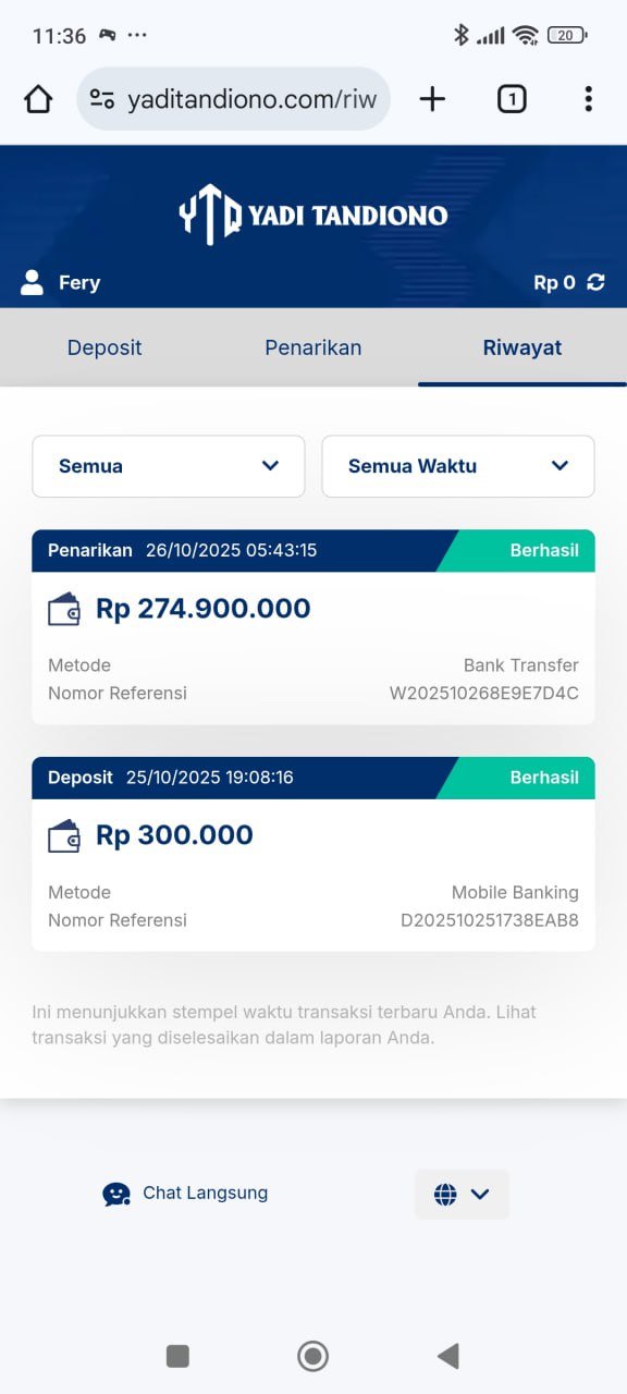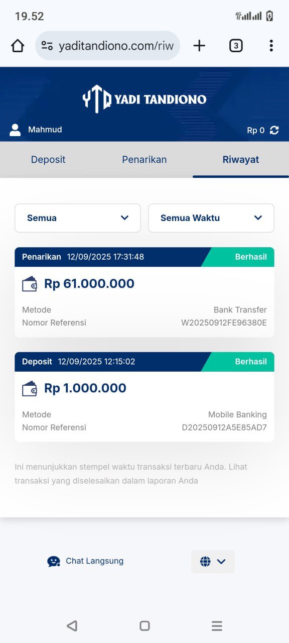 hasil withdraw kemarin pak yadi, terima kasih sudah bantuannya 👍