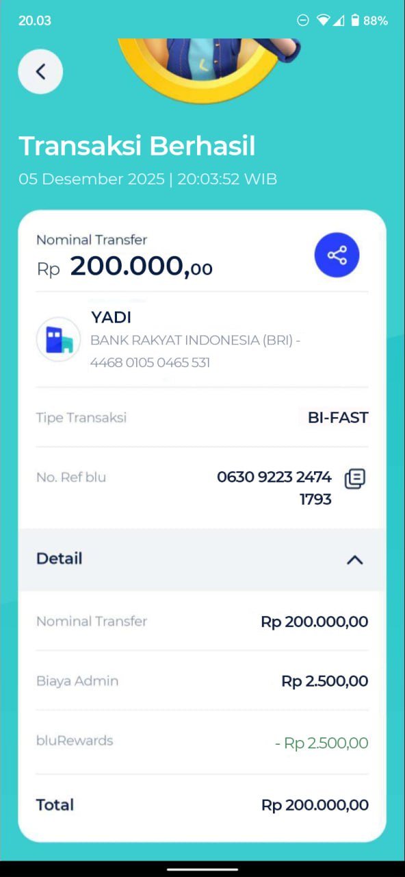 mksh bnyk bpk yadi, saldo wdnya udh msk lg🙏
