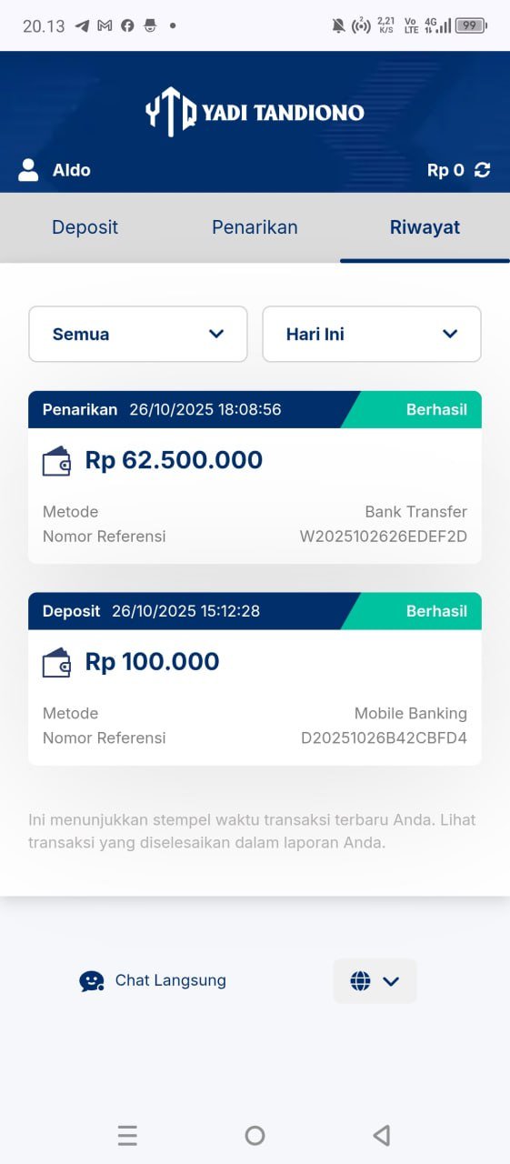 withdraw HK tadi malam sebenernya udah masuk, tapi baru tarik dan cek tadi pagi ini, ternyata udah berhasil 168jt. Mantap pak yadi 👍