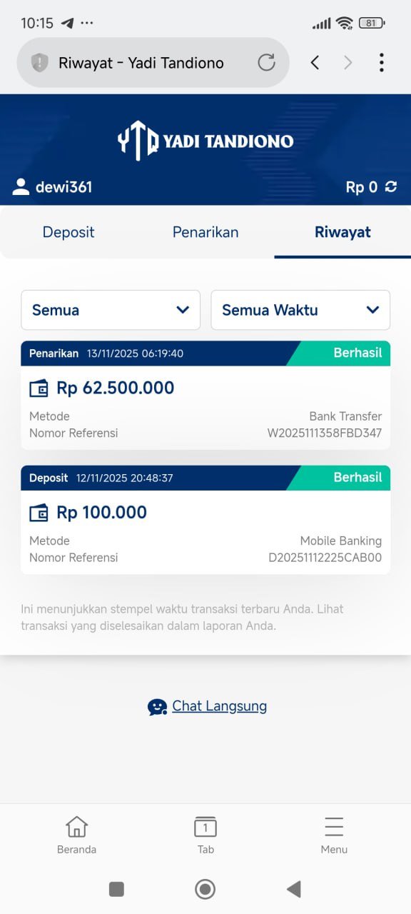 hasil wd sudah msk pak yadi, terima kasih banyak sudah bantu cairkan 🤑
